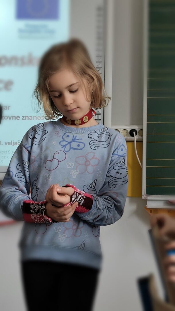 Zahvaljujemo profesorici Teni Babić Sesar na zanimljivom i poticajnom vođenju radionice i nadamo se da će učenici potaknuti ovom radionicom i dalje njegovati zavičajne riječi, ples, pjesmu, igre i običaje.