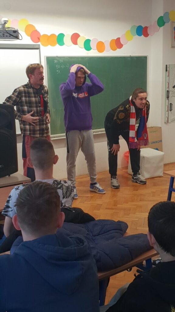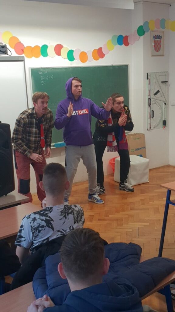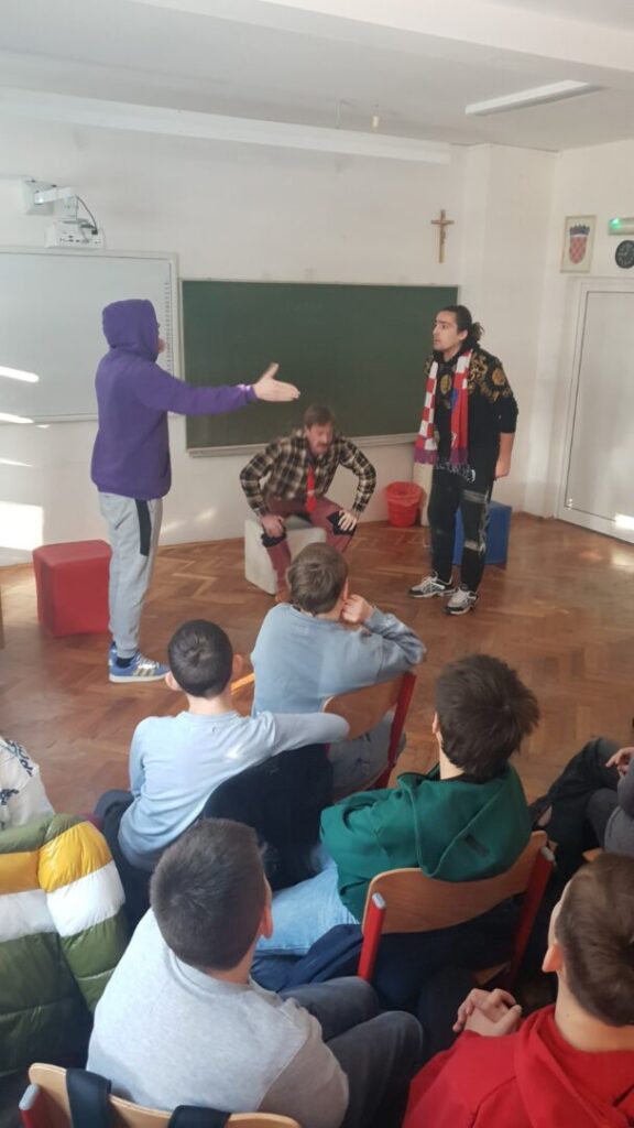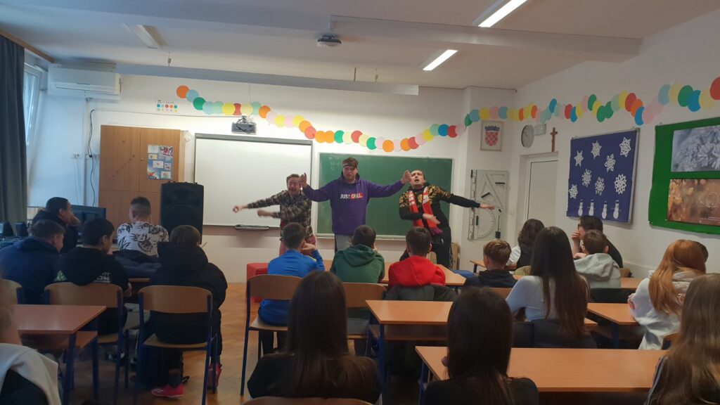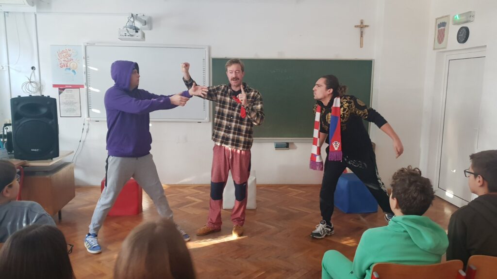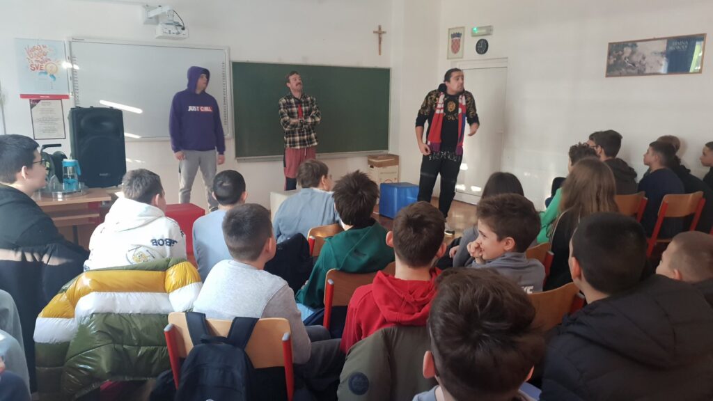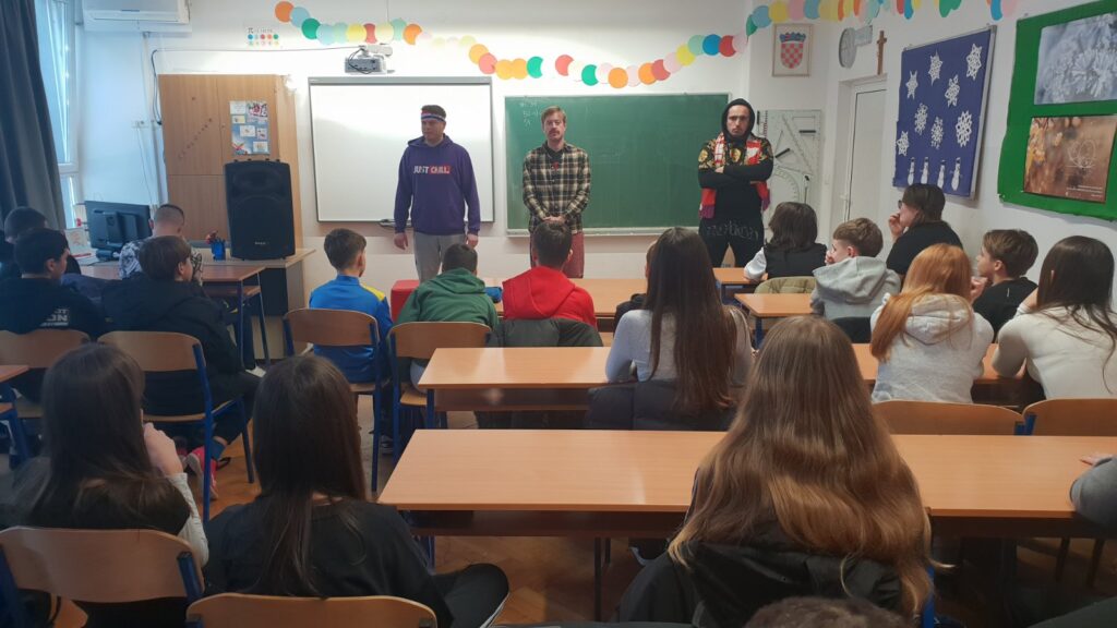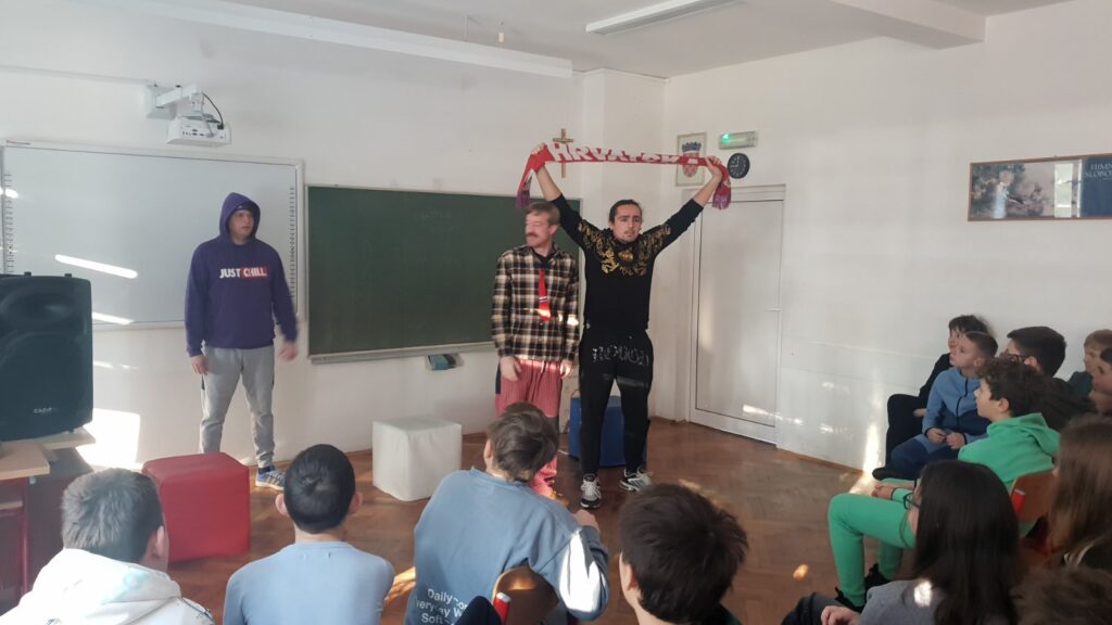 Učenici su s velikim zanimanjem pratili predstavu koja je, osim što je bila zabavna, imala snažnu edukativnu i preventivnu poruku o važnosti tolerancije, poštovanja i zajedništva u sportu, školi i svakodnevnom životu.