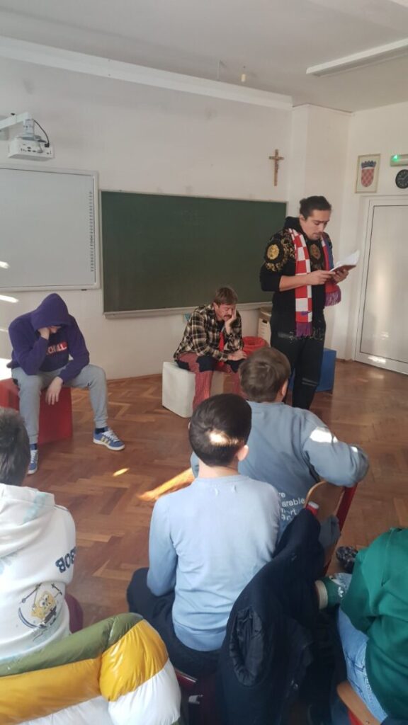 U ponedjeljak, 19. siječnja 2026., u našoj je školi održana kazališna predstava „Raspucavanje“ za učenike od 5. do 7. razreda. Predstava je izvedena u produkciji Kazališta Lutonjica Toporko, u suradnji s Hrvatskim nogometnim savezom i Ministarstvom obrazovanja te je za našu školu bila omogućena besplatno.