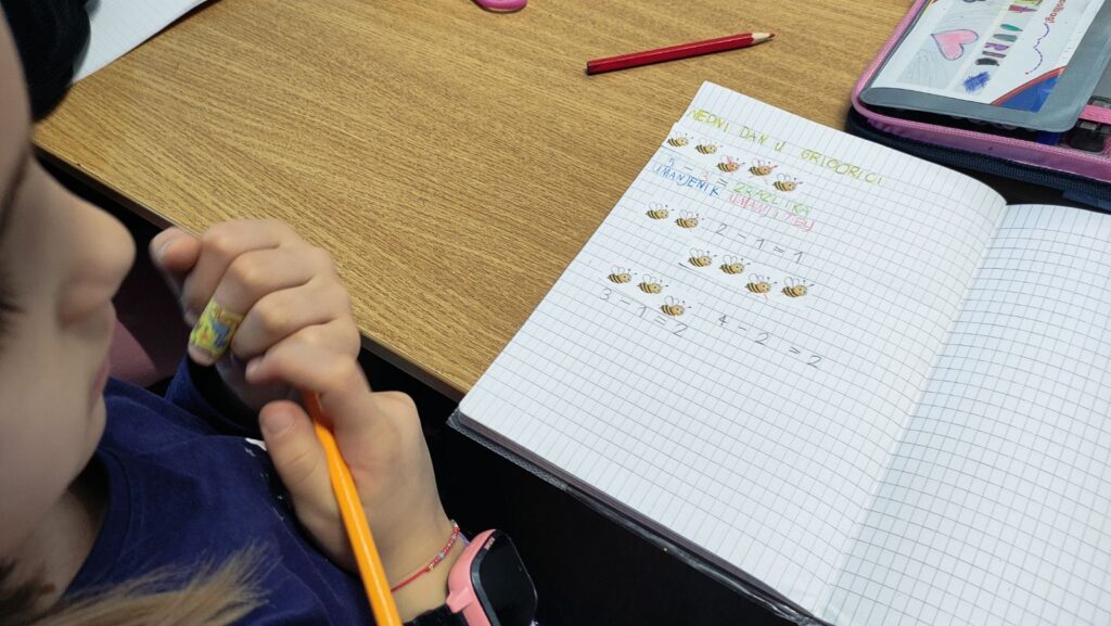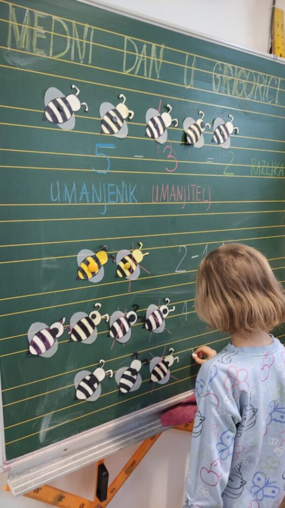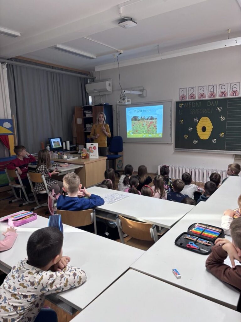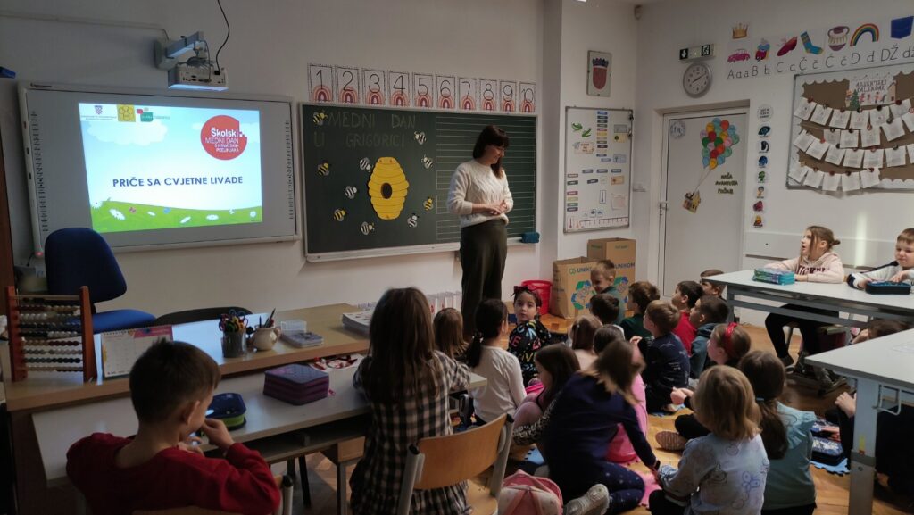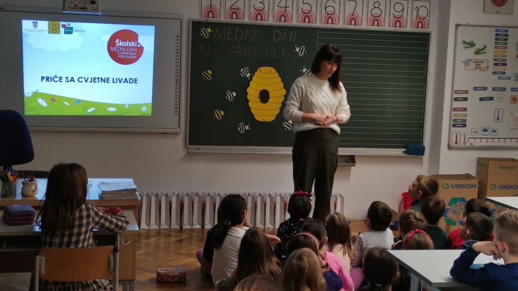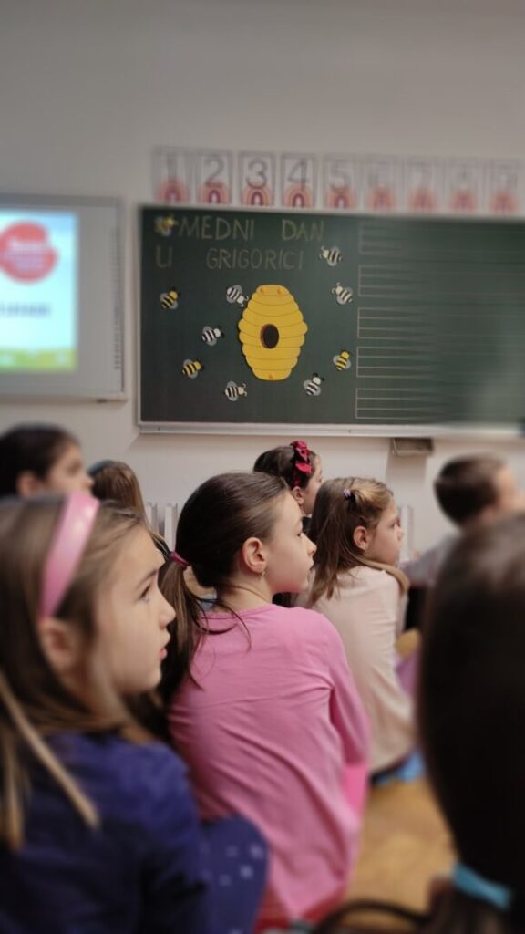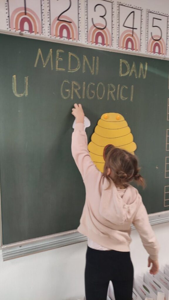 Kroz integrirani dan pod nazivom Medni dan u Grigorici učiteljice prvih razreda Ivona Tumir i Adrijana Leko su sve aktivnosti osmislile tako da budu povezane sa pčelama i medom U sklopu nastave hrvatskoga jezika čitali su slikovnicu Pčelica Jelica i medo Edo, a zatim slušali radio-priču Pčelinji bijeg kroz koje su razgovarali o važnosti pčela za prirodu i čovjeka. U matematici su im pčele postale male pomagačice – učenici su uz njih stvarali računske priče te vježbali zbrajanje i oduzimanje brojeva do 5.