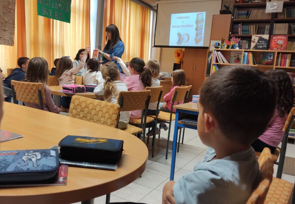 Učenici 1. razreda 30. rujna 2025. posjetili su školsku knjižnicu i time najavili listopad kao međunarodni mjesec školskih knjižnica. Tom prilikom upoznali su prostor knjižnice, slikovnice, knjige i časopise namijenjene najmlađim čitateljima. Naučili su i osnovna pravila ponašanja u knjižnici.