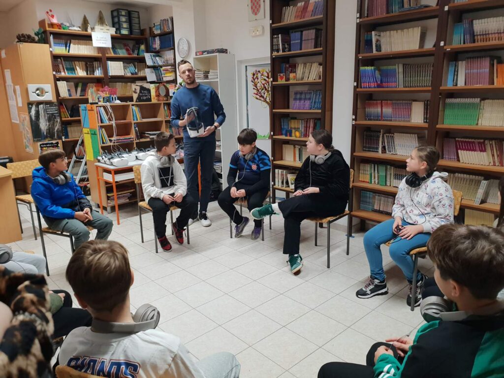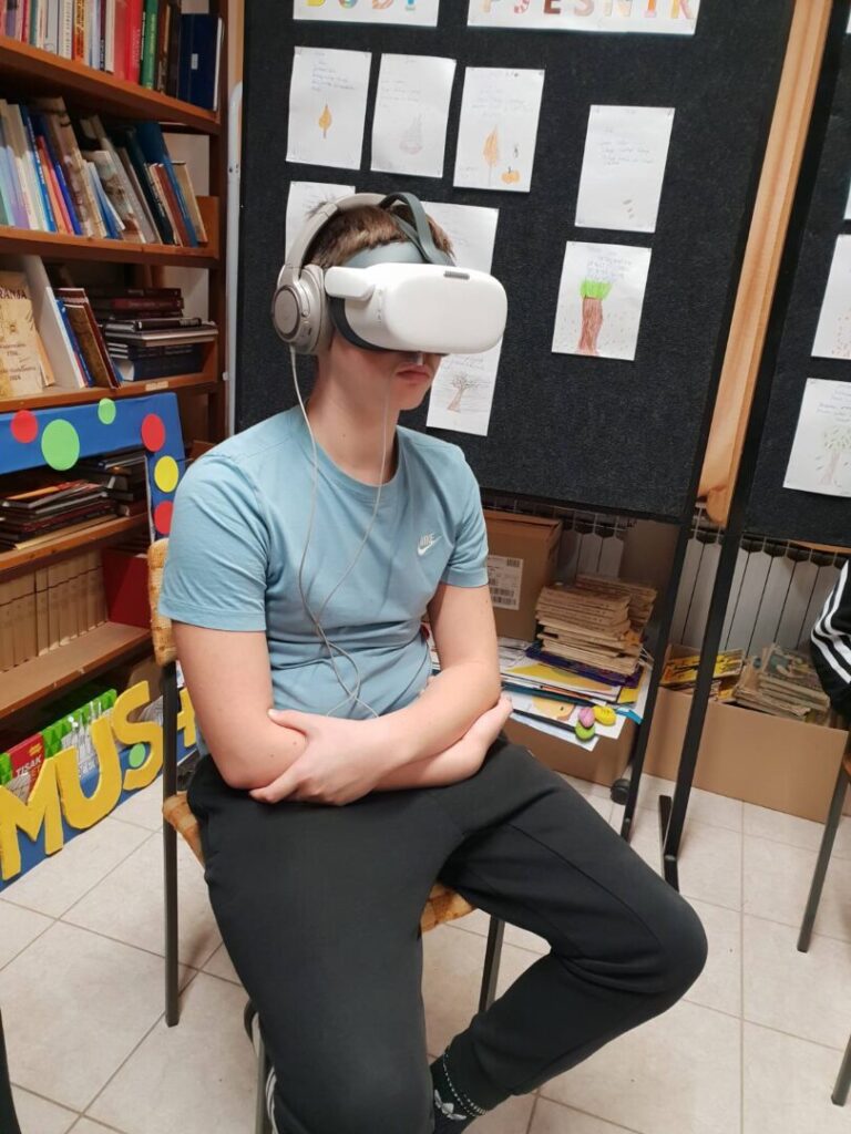 U petak, 21. studenoga, ugostili smo putujuće VR kino KEK koje je u Hrvatskoj otvorio Davor Rostuhar, poznati fotograf i putopisac. Učenici predmetne nastave imali su priliku iskusiti virtualnu stvarnost gledajući u školskoj knjižnici jedan od dva edukativna filma: Lovci sakupljači i 1. i 2. korak u svemir.